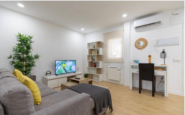 Pis a nivell de carrer. Ideal per a viatges de negocis, viatges d'estudi, assumptes mèdics, etc., amb vitroceràmica, nevera, rentadora/assecadora, rentaplats, bomba d'aire fred/calent, microones, Nespresso, estris de cuina complets, bullidor per a infusions, llit doble, sofà llit 190x150, televisor intel·ligent, wifi, alarma, línia directa de metro a Sol (15"), bany gran, dutxa de pluja, dispensadors automàtics de gel. Zona de jardí, aparcament molt fàcil, amb dos parcs infantils amb gronxadors