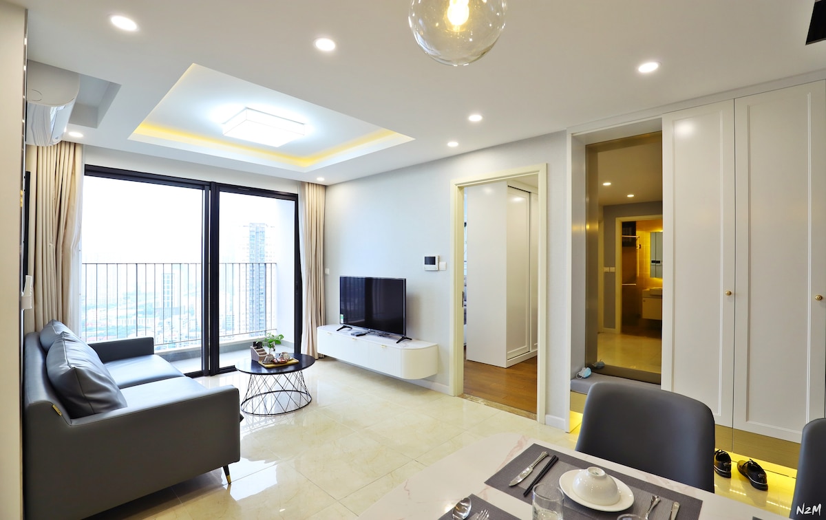 ● Hola, el meu estimat hoste! VINHOMES D'CAPITALE és famós pel bon servei, luxe i apartament d'alta qualitat. ● Pis ESTUDI amb 1 llit gran, 1 bany privat, sala d'estar amb un bonic sofà per relaxar-te amb internet i televisió per cable amb Netflix, wifi de fibra gratuït (50 MBps)... i mobles d'alta gamma. El balcó està ple de sol. Vista completa de la ciutat. ● Llit de mida gran i tota la roba de llit suau d'alta gamma, aire condicionat de 2 vies per a un bon i profund son.