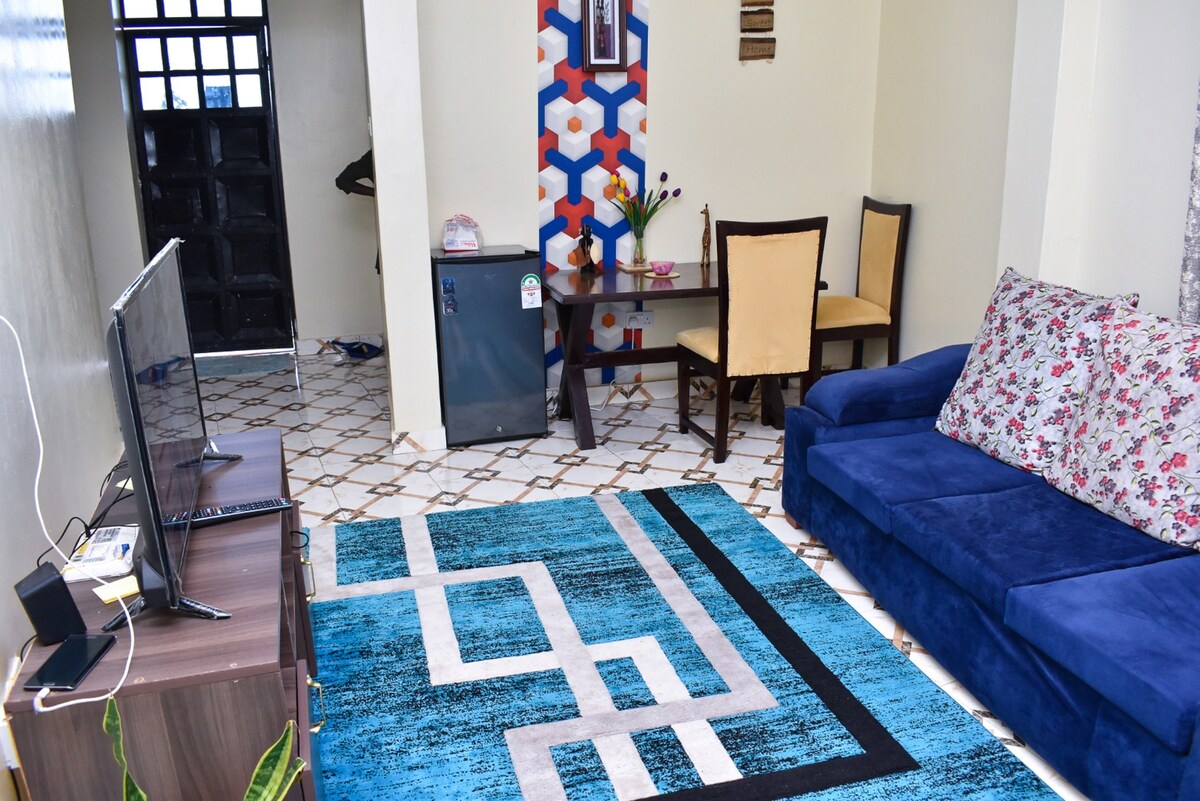 Et donem la benvinguda a Chill Spot Meru, un apartament modern i acollidor d'un dormitori situat davant del Politécnic Nacional de Meru amb seguretat les 24 hores. Gaudeix d'una estada tranquil·la en un edifici segur amb ascensor, wifi ràpid, una zona d'estar còmoda, una cuina totalment equipada i un dormitori net i relaxant. A prop de botigues, transport i Meru Town. Perfecte per treballar, estudiar o fer una escapada relaxant. Sent-te com a casa i relaxa't amb comoditat