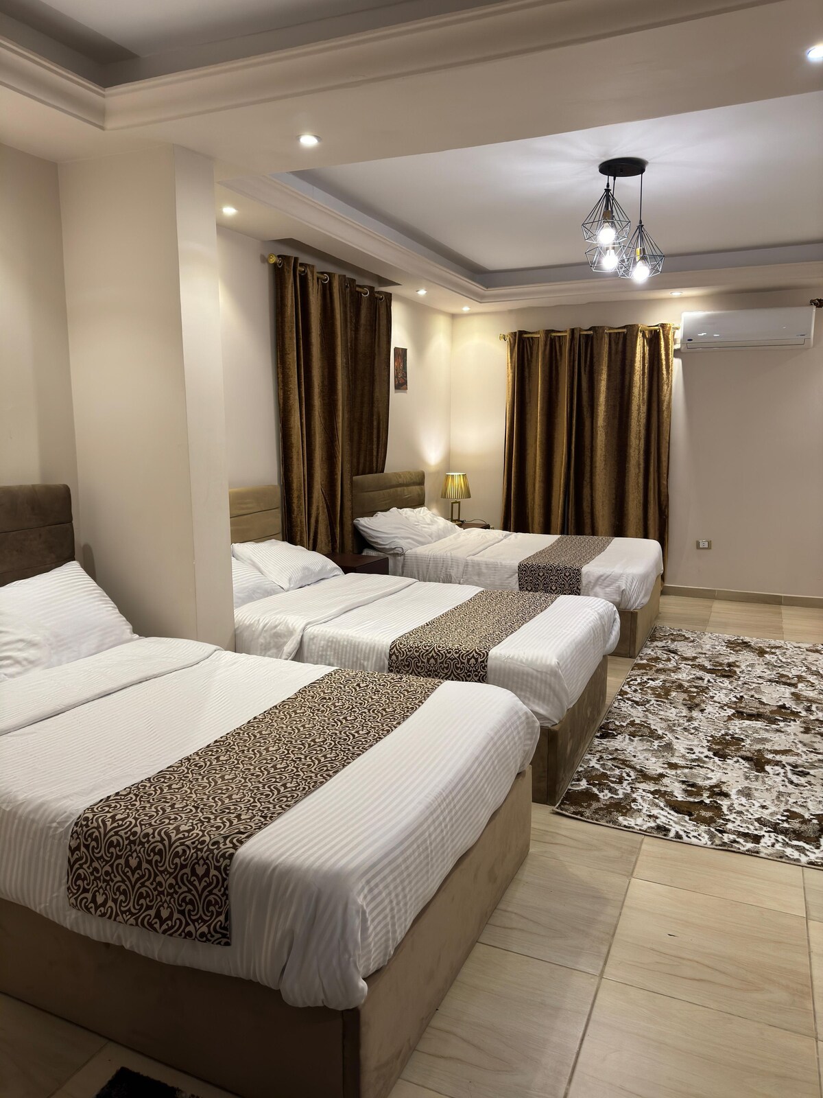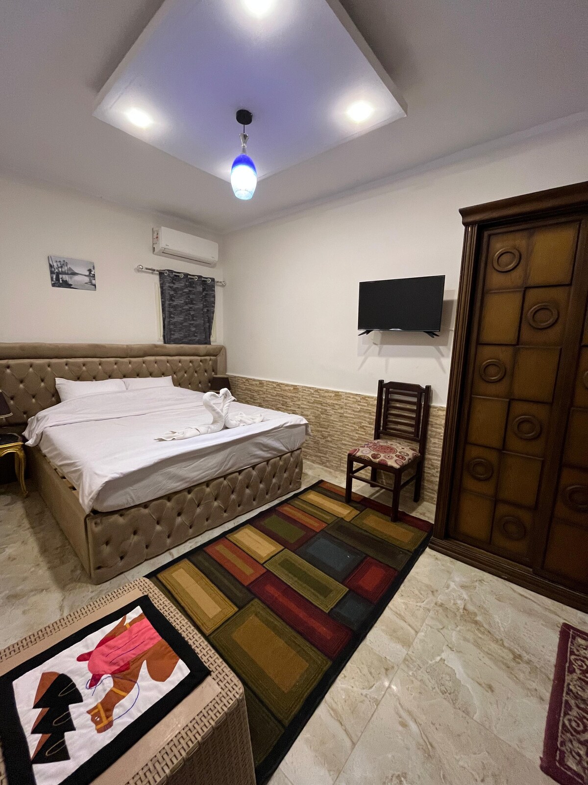 Welcome to the King Tut Hotel, where history meets hospitality! Our guest house, nestled in the heart of an antiqued and friendly neighborhood, offers a unique blend of comfort and adventure. With a privileged location just a 10 minute stroll from the majestic pyramids, your stay promises not only a cozy haven but also an awe-inspiring view of these iconic wonders. Cleanliness is our top priority, promising you a spotless haven to relax after your daily explorations.