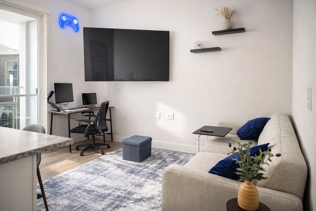 Desperta amb unes vistes impressionants al llac en aquesta moderna suite de disseny d'1 dormitori i 1 bany a Las Colinas. * 💎 VIDA DE LUXE: suite de disseny amb unes vistes impressionants i un balcó privat. * 🚉 APROFITAT PER A DESPLAÇAMENTS: a prop de la línia taronja de DART per anar a qualsevol lloc de DFW * 💪 SERVEIS: gaudeix d'accés les 24 hores a un gimnàs d'alta tecnologia, piscina, sales de conferències i sala de jocs, tot amb unes vistes impressionants del llac. * 💻 POTÈNCIA: 1 GB de wifi de fibra + espai de treball dedicat amb configuració de monitor de 27". * ✨ L'OFERTA: gaudeix dels avantatges d'un complex hoteler de 5 estrelles sense pagar-ne el preu