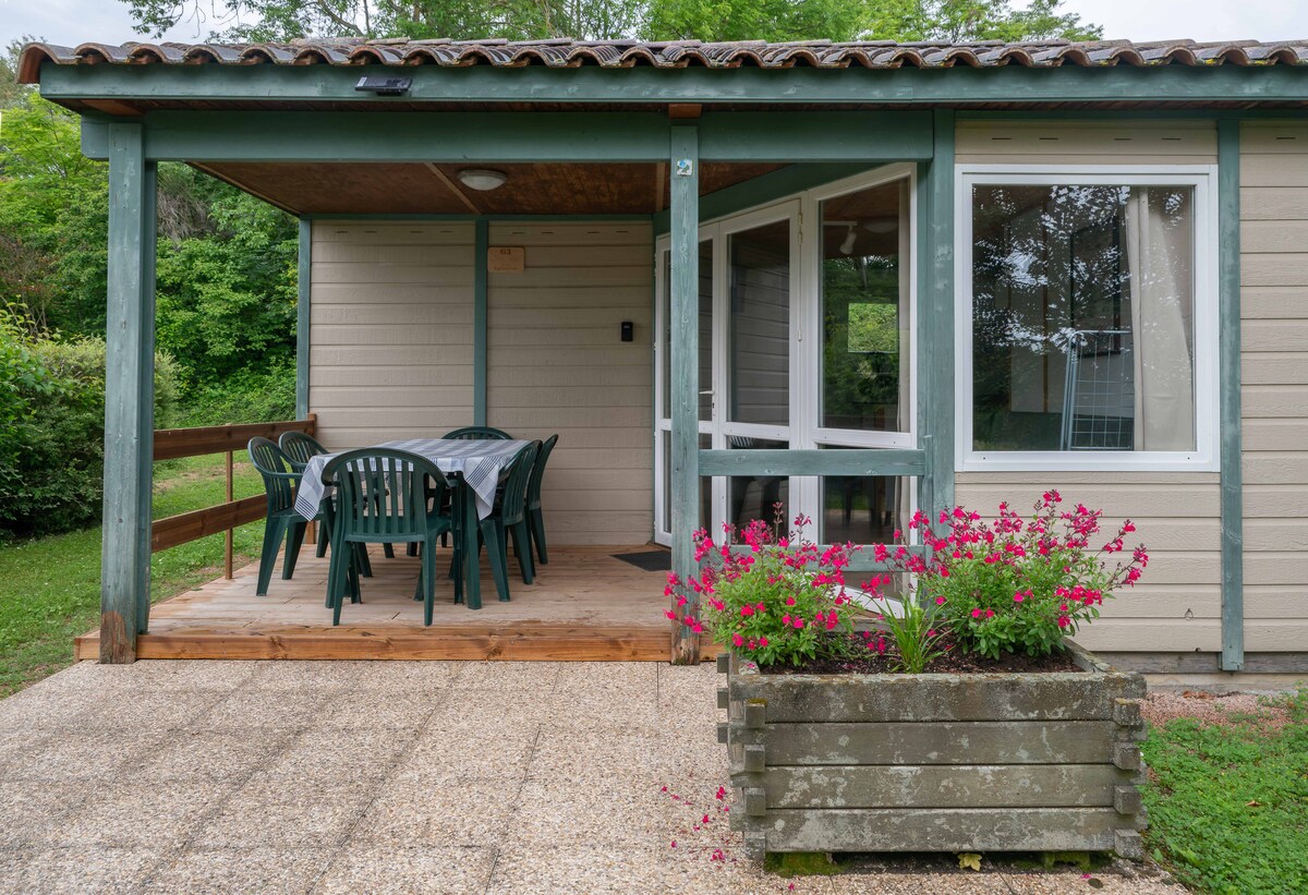 Casa independent i no contigua de 40 m2 al nostre gran jardí tancat i boscós, en una zona tranquil·la. En una sola planta, consta d'un dormitori amb llit doble i llit per a nadons si cal, una sala d'estar amb sofà llit doble i sofà llit individual, zona de menjador i cuina oberta equipada. A l'estiu, durant el dia, l'accés a la piscina de la casa dels propietaris de al costat. ( piscina no privada per als llogaters per compartir, però és gran, 6m X12m) Descompte del 30% per als curistes