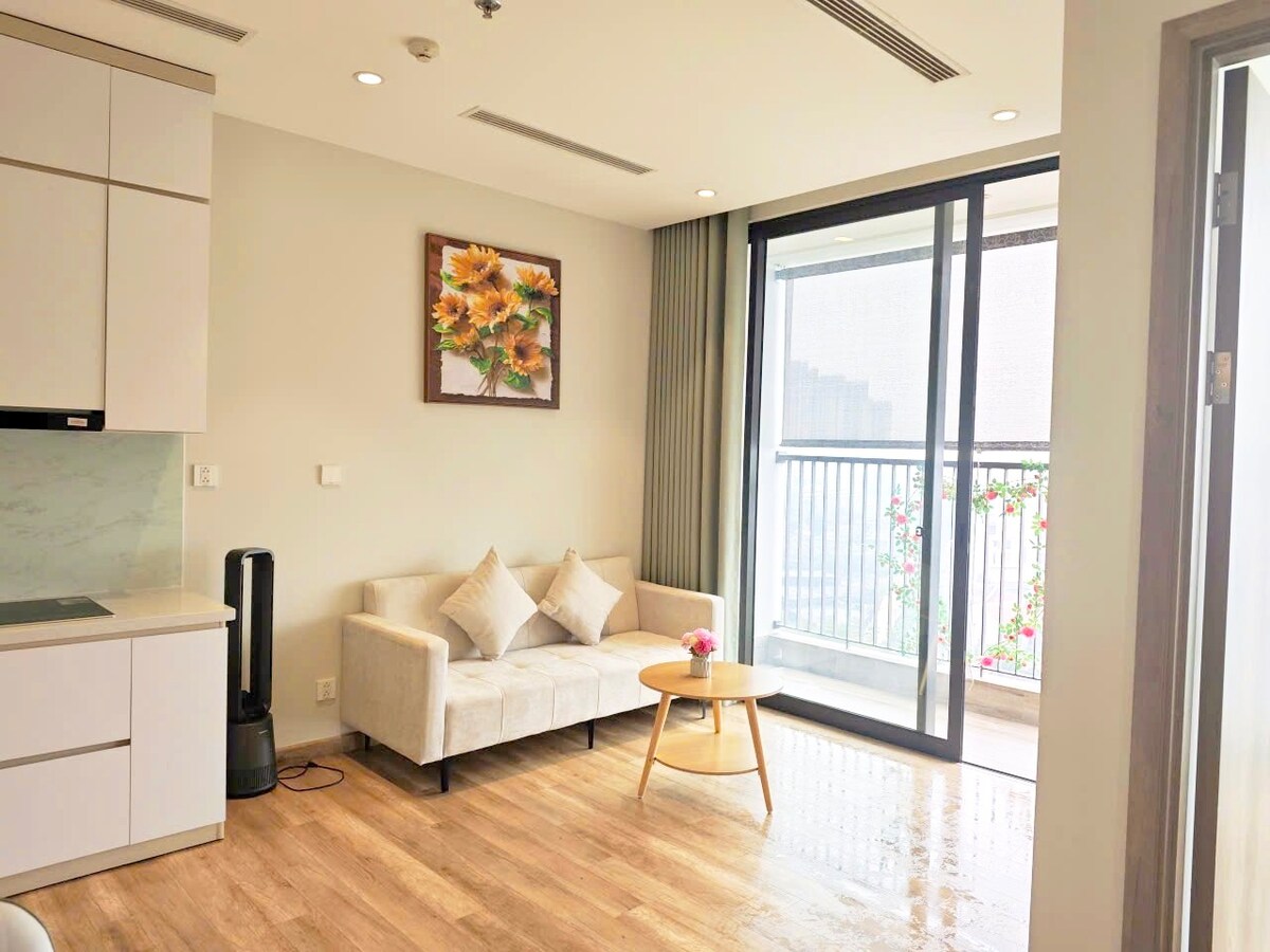 Preciós apartament nou i net d'1 habitació per a un màxim de 2 adults i 2 nens, totalment moblat, a 4,5 km del poble de ceràmica Bat Trang, fàcil accés al centre d'Hanoi amb servei d'autobús (10.000 vnd / 0,4 $). Al 14è pis amb fantàstiques vistes al paisatge, bonics voltants amb llacs, carrils bici, piscina, restaurants, cafeteries i a la primera planta hi ha un winmart i un supermercat.