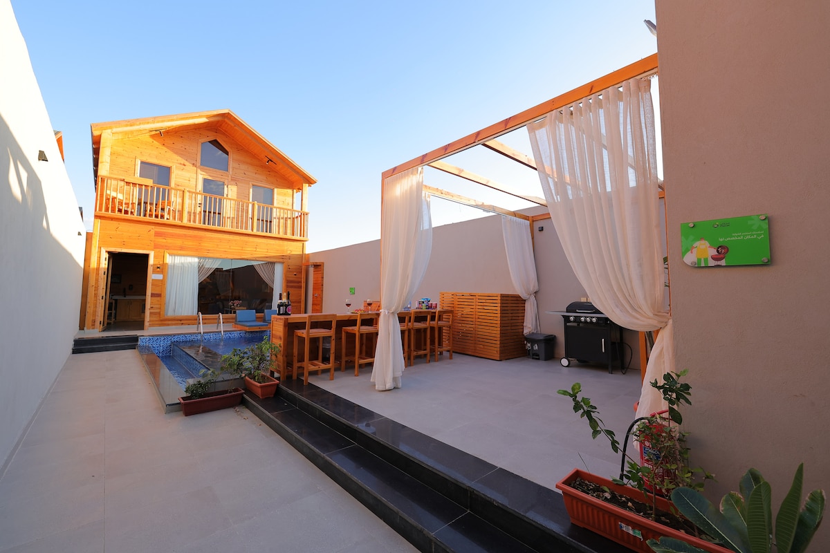 T'encantarà aquest espai romàntic únic. Hi ha 2 adults i 2 nens L'allotjament està a 40 minuts del centre de Jeddah i a 35 minuts de l'aeroport. Es troba a 15 minuts dels serveis existents, incloent-hi molts dels famosos restaurants de peix de Jeddah. El xalet es troba a 700 metres de la platja. Es troba a una hora i mitja de La Meca. No hi ha taxis(taxis o Uber) a l'allotjament. Hi ha un enllaç a la carretera que no és defectuosa, però tots els cotxes hi caminen, lluny del bullici de la ciutat per a aquells que busquen el lloc de la calma, la privacitat i l'ambient clar. Hi ha un treballador de serveis i un vigilant. Creem records preciosos.