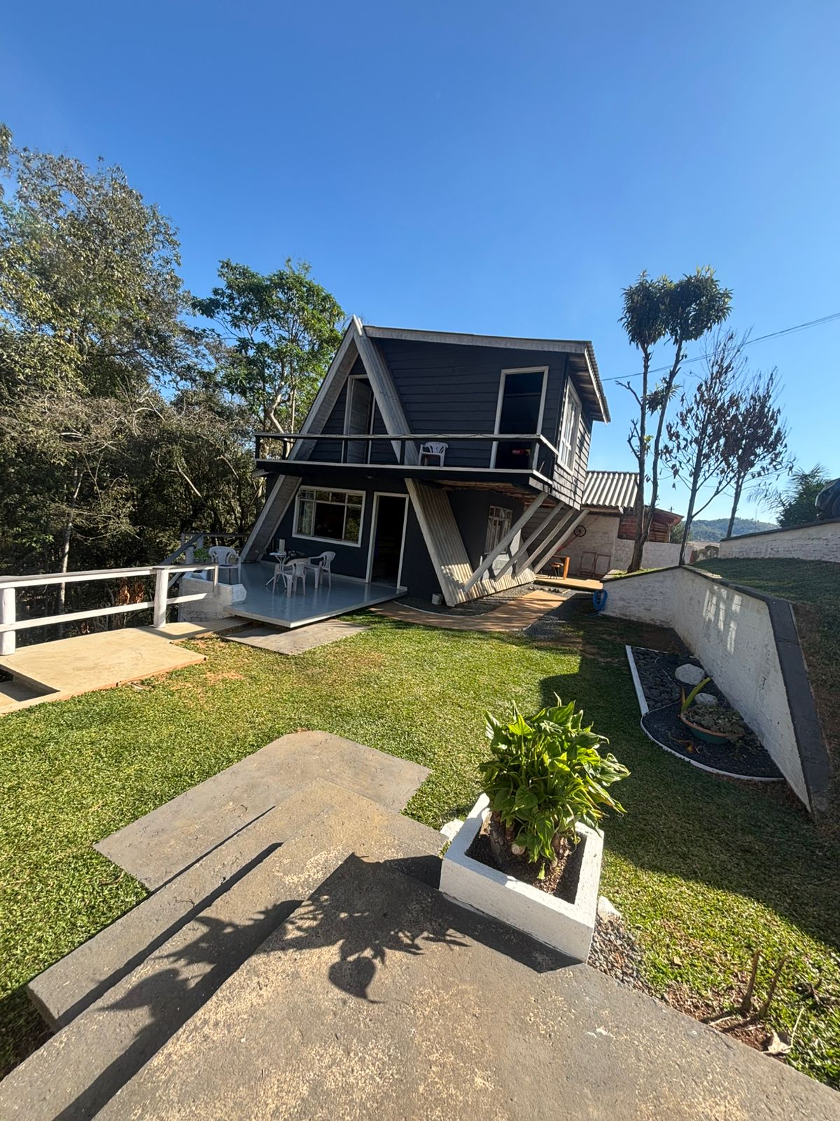 Desfrute de momentos únicos nesta charmosa cabana estilo A-frame, perfeita para relaxar e se desconectar da rotina, com varanda privativa, vista para o verde e um ambiente tranquilo, é o refúgio ideal para casais, famílias ou quem busca paz e conforto. • Ambiente completo e confortável • Espaço externo para descanso e refeições • Contato direto com a natureza • Fácil acesso e estacionamento no local Acordei com o som dos pássaros, respire ar puro e aproveite cada segundo