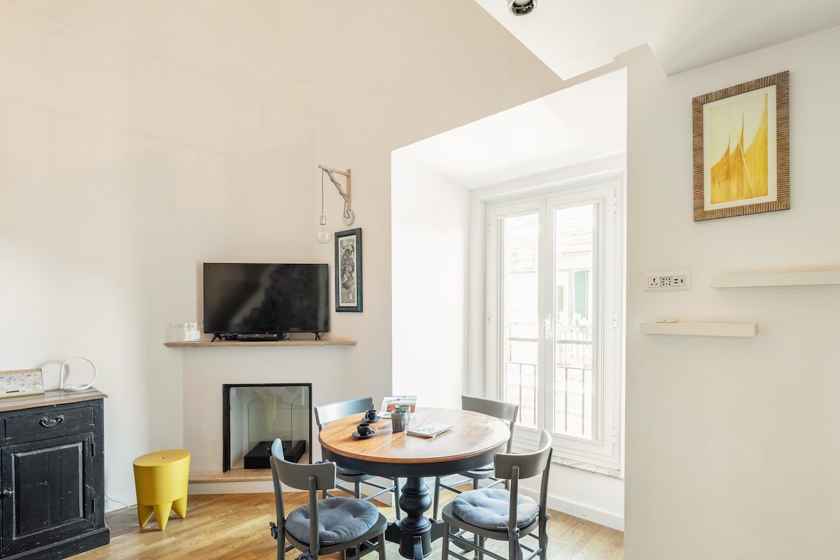 Encén el gran foc de pedra i relaxa't amb un llibre en aquest elegant allotjament amb vistes a Via dei Banchi Nuovi. Els sostres empedrats cobreixen les habitacions acollidores en tons relaxants i neutres accentuats pel mobiliari de disseny i les pintures originals del propietari. Aquesta encantadora casa totalment renovada es troba en una de les zones més boniques, antigues i vibrants del centre de la Ciutat Eterna. També ens agrada oferir una hospitalitat eco-sostenible: utilitzem l'electricitat de fonts renovables i productes ecològics.