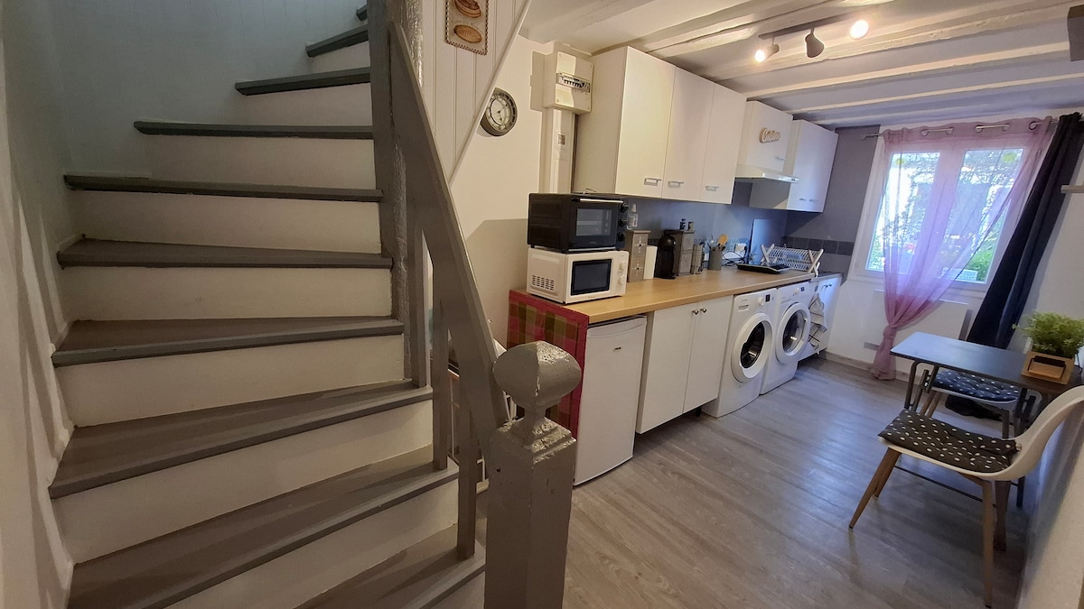 Fes un descans romàntic a la nostra petita casa totalment equipada al cor d'un poble d'Anjou. Gaudeix de la banyera balneo del dormitori, un llit «king size» de 180x200, fibra i tot el que necessites per passar una o més nits. L'arribada és independent i discreta. S'ofereix una ampolla de vi escumós, així com càpsules de cafè i te. Disposes d'un servei de raclette, un servei de fondue i xocolata.