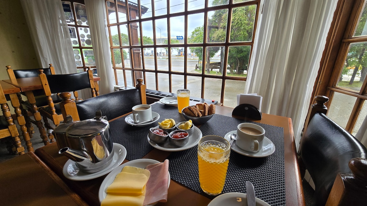 Tu lugar en el fin del mundo. Confortable, pacífico y familiar. Hermosas vistas a las montañas y a la Bahía. Desayuno incluido. Wifi y estacionamiento gratis. baño privado con bañera.