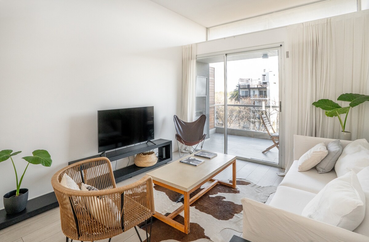 Un apartament elegant d'un dormitori en un barri de primera de Buenos Aires. Una cuina moderna integrada en una gran sala d'estar, menjador i balcó. Piscina, graella i gimnàs amb vistes al riu a la planta superior! La graella es pot reservar per un cost addicional. Si necessites aparcament privat, també pots gestionar-lo!