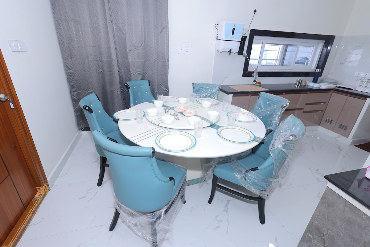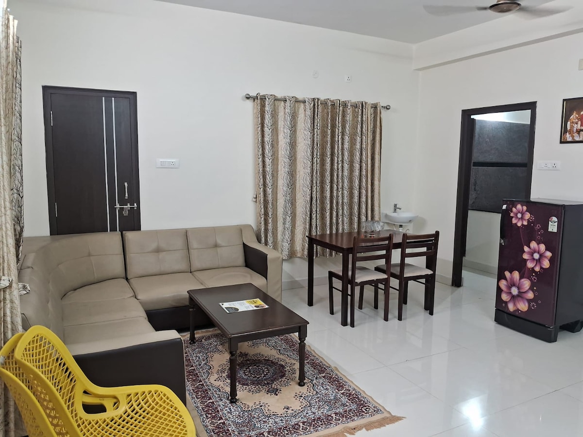 Acollidor i còmode apartament 2BHK per a peregrins a Tirupati Et donem la benvinguda a un apartament de 2 dormitoris, sala i cuina (2BHK) dissenyat amb cura i totalment moblat, ideal per als pelegrins que visiten la ciutat sagrada de Tirupati. Aquest pis ofereix: Vida espaiosa: una sala ben moblada amb seients còmodes i una decoració serena, perfecta per relaxar-se després d'un llarg dia. Dormitoris còmodes, Cuina moderna, Power Backup, Aparcament còmode.