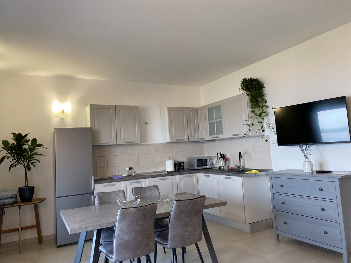 Pis modern al centre històric de Biograd, a 5 minuts de la platja. Inclou dos dormitoris amb llits dobles, una sala d'estar amb sofà llit, una cuina totalment equipada, bany, aire condicionat, wifi ràpid, televisor i rentadora. Tot el que necessites per gaudir d'una estada còmoda a prop del mar, a prop de botigues, restaurants i del passeig marítim. Ideal per a un màxim de 5 hostes.