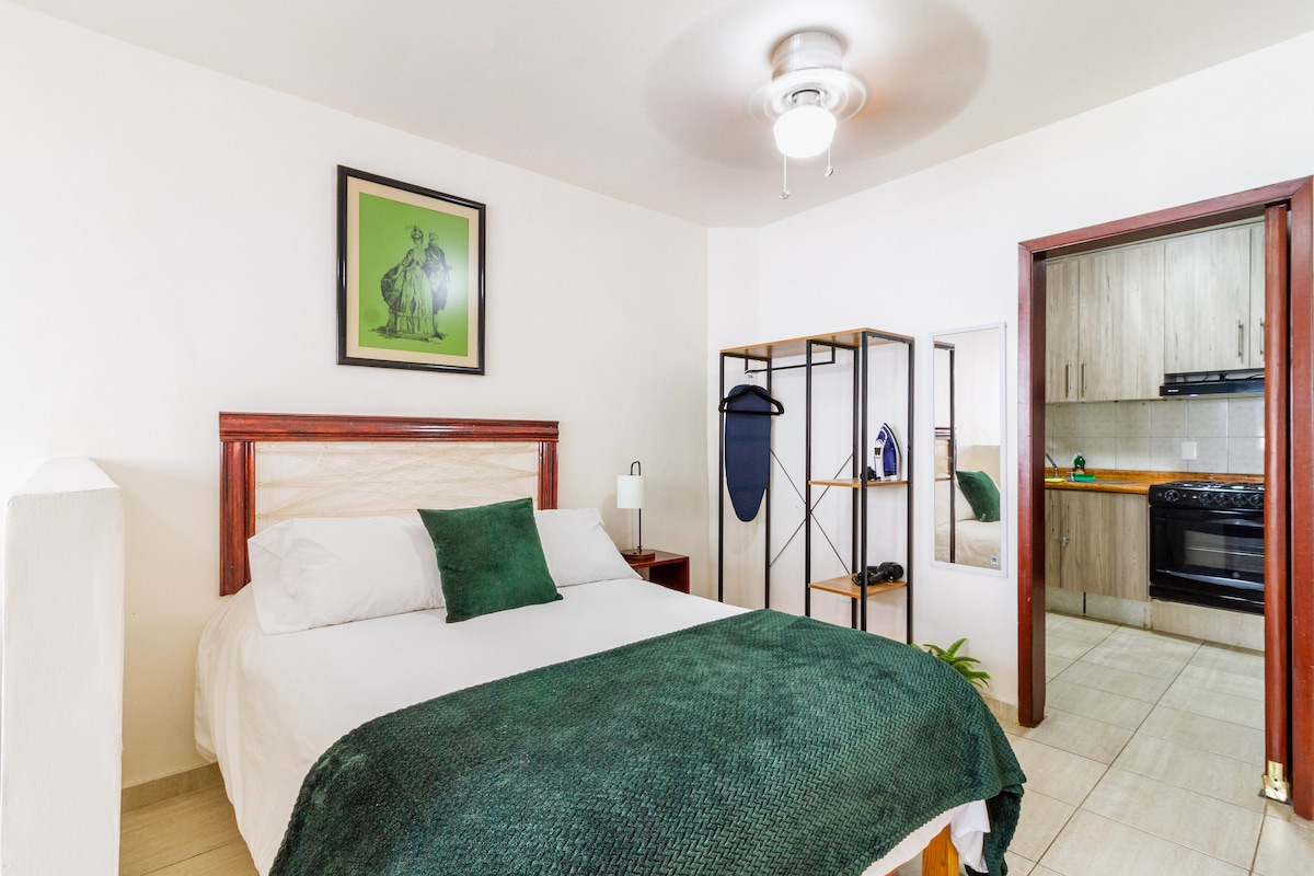 Gaudeix de la teva estada al cor de Guadalajara! Viu en una de les zones més populars de la ciutat: La Colonia Americana. Hem dissenyat aquest lloc pensant en tu: tens una cafetera francesa per gaudir d'un cafè matinal deliciós. A la cuina trobaràs el que necessites per quan vulguis menjar a casa. Tasta una cervesa freda o un vi deliciós a la teva terrassa privada i descansa en un gran llit de mida Queen.