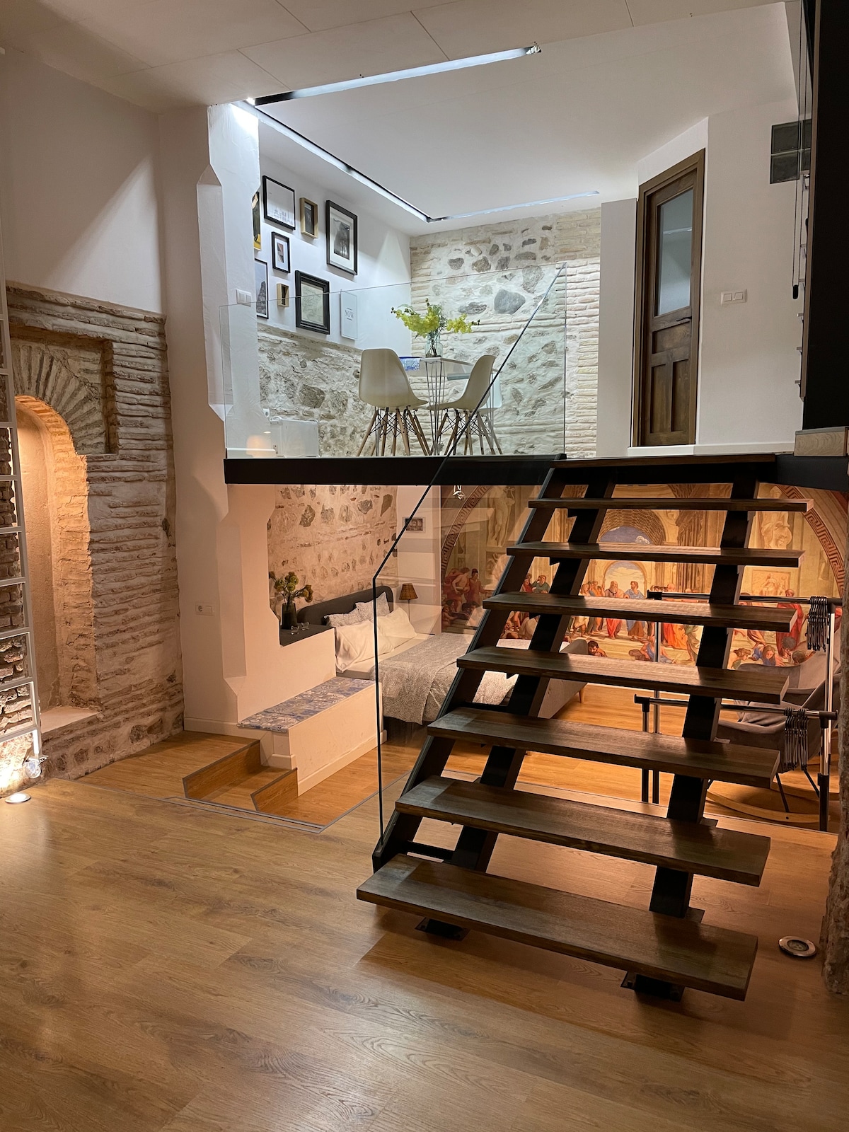 És un altell recentment reformat pertanyent a un edifici catalogat amb protecció del patrimoni històric-artístic de la ciutat de Toledo. L'edifici data del segle XI, allotjant un arc de taifa dels més interessants i millor conservats. A només 50 m de l'Alcázar de Toledo i a uns 100 m de la plaça de Zocodover, al cor del nucli antic.
