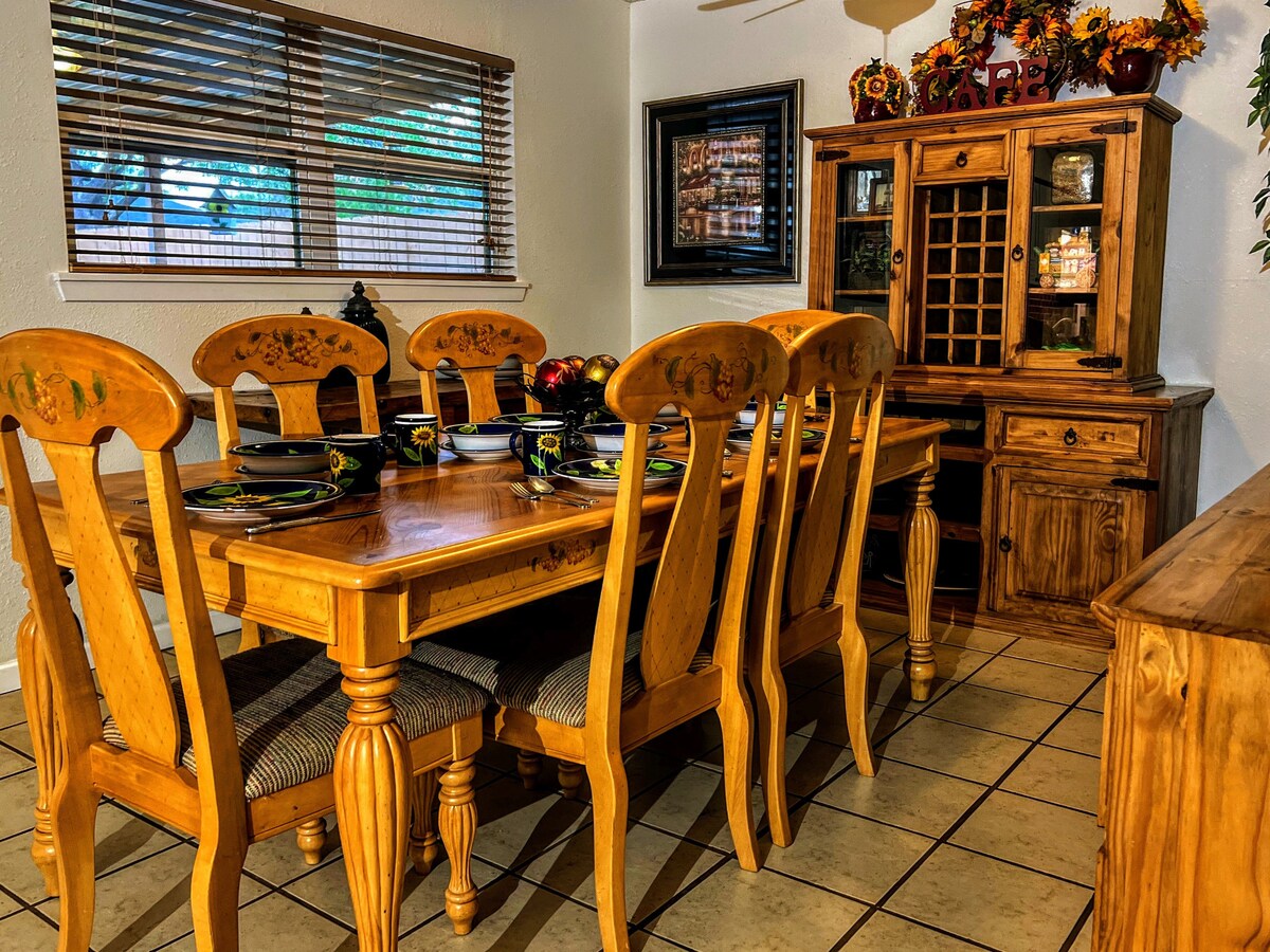Et donem la benvinguda a la casa groga Texas Star! Amb una ubicació còmoda a prop de la base, del centre de la ciutat i de l'hospital, trobaràs que tot el que necessites està a prop! La casa està totalment equipada i a punt per a la teva estada! El meu lloc preferit per passar l'estona és el cenador del pati del darrere. El concepte obert fa que sigui molt fàcil conversar mentre cuines o juga a jocs! L'espai d'oficina (configurat amb estació base, pantalles dobles, ratolí sense fils i teclat) és ideal per treballar amb la gent de viatge.