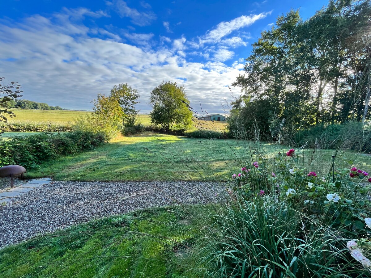 Mein Holzhaus liegt in Kating - "Insel der Ruhe"- in der Nähe von Sankt Peter Ording. Dänische Holzhäuser, Wald, Wasser, Wattenmeer...Zu Fuss oder mit dem E-bike auf alte Deiche und Wege fahren. Bei der alten Schankwirtschaft Wilhelm Andresen einkehren und Eiergrog trinken. Weiter geht es zum Eidersperrwerk-Deutschlands größtes Wasserbauwerk-wo sich Gäste aus aller Welt treffen und sich mit Kaffee, Torte und Fischbrötchen stärken. Accomodation My house is comfortable and scandinavian Style and