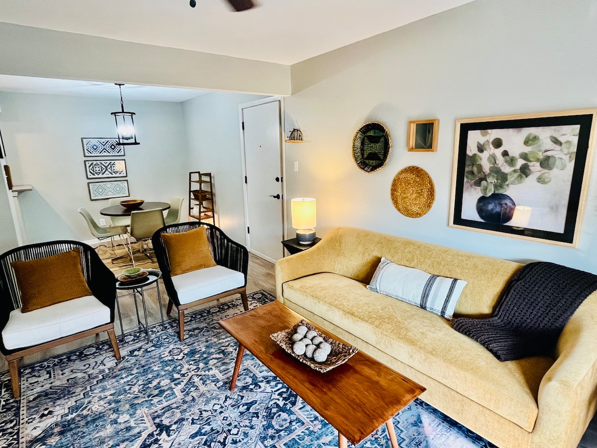 Make yourself at home in this chic retreat, a cozy unit with everything you need for a relaxed stay—full kitchen, washer/dryer, and off-street parking included. The location couldn’t be better: walk to KU’s campus, coffee shops, or local restaurants in minutes. If you’re planning a larger gathering, you can reserve the entire property (all three units) to host up to 12 guests—a perfect blend of togetherness and privacy.