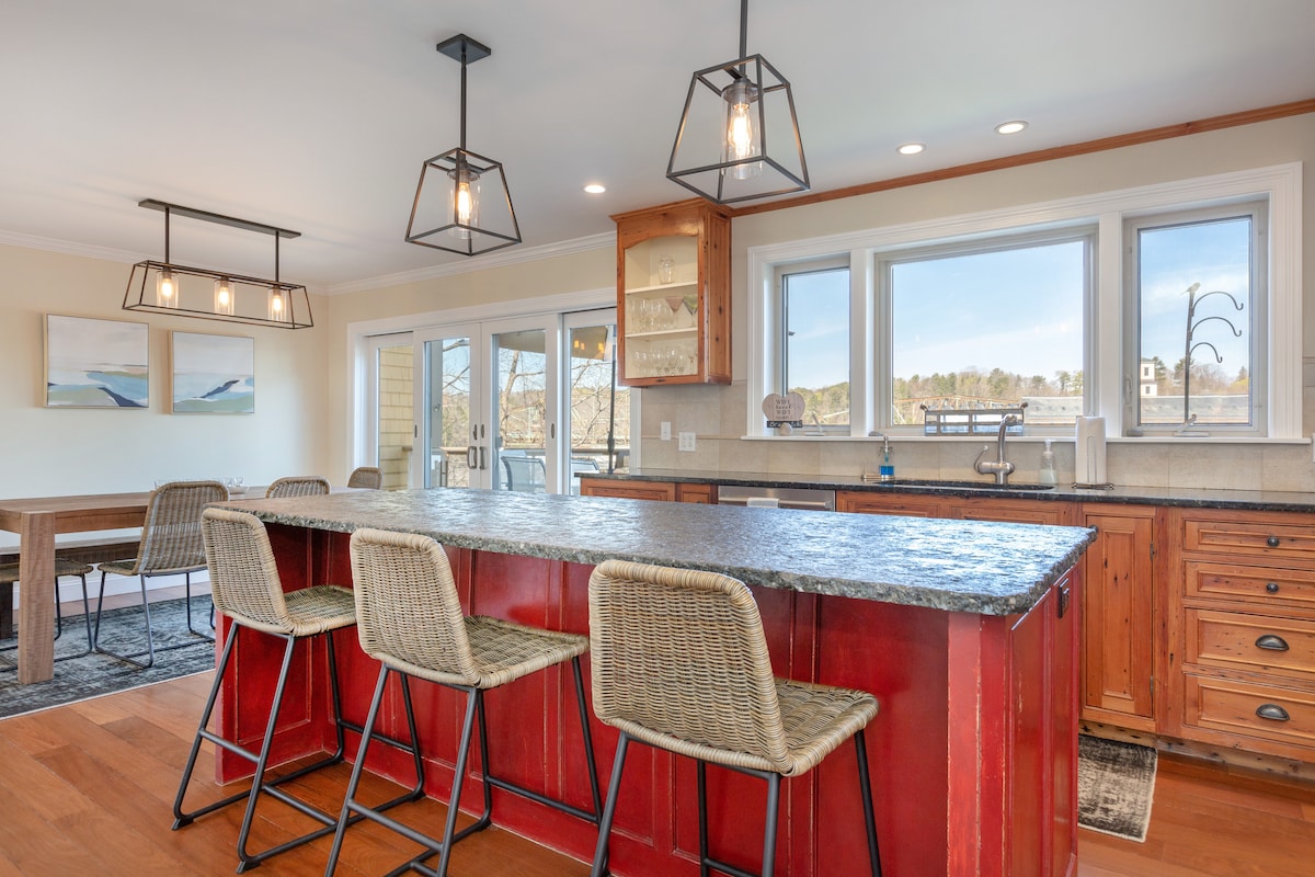 Aquesta caseta moderna i artesanal, que ha aparegut a VOGUE i a Maine Home + Design, ofereix unes vistes tranquil·les a l'Atlàntic, 45 metres de costa i un moll privat, perfecte per prendre un cafè al matí, fer piragüisme o veure foques, aus marines i vaixells que passen. Situada entre pins alts, combina influències nòrdiques i japoneses en un espai tranquil i compost. Els interiors de fusta, pedra, guix de calç i formigó formen un refugi a terra, tranquil·lament expressiu i construït de manera sostenible. A 1 hora de Portland, però un món a part.