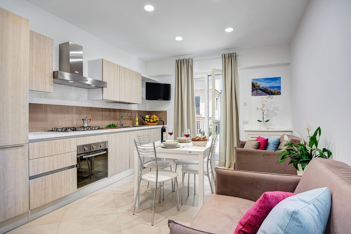 Apartament en una vila independent, finament reformada i equipada amb totes les comoditats. Està situat en una petita vila de Massa Lubrense molt a prop de la preciosa platja Marina del Cantone, des d'on es pot embarcar per l'illa de Capri, Positano i Amalfi. La preciosa Sorrento està situada a només 10 km i s'hi pot accedir en cotxe o autobús, la parada de la qual està situada a 10 m del pis. No s'admeten animals.