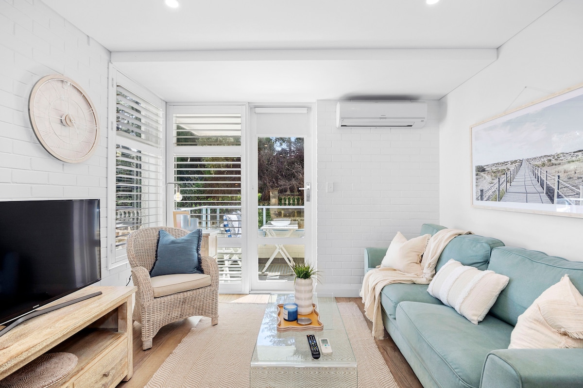 Beautiful air conditioned studio with private access from our restored luxury character home. It is crisp, cool and fresh throughout summer and overlooks a stunning private and secluded garden. For cooler months it transforms to a cosy and comfortable abode. Stroll to the pristine beach only 50 paces away. Public transport within 100mtrs & wonderful amenities close by.