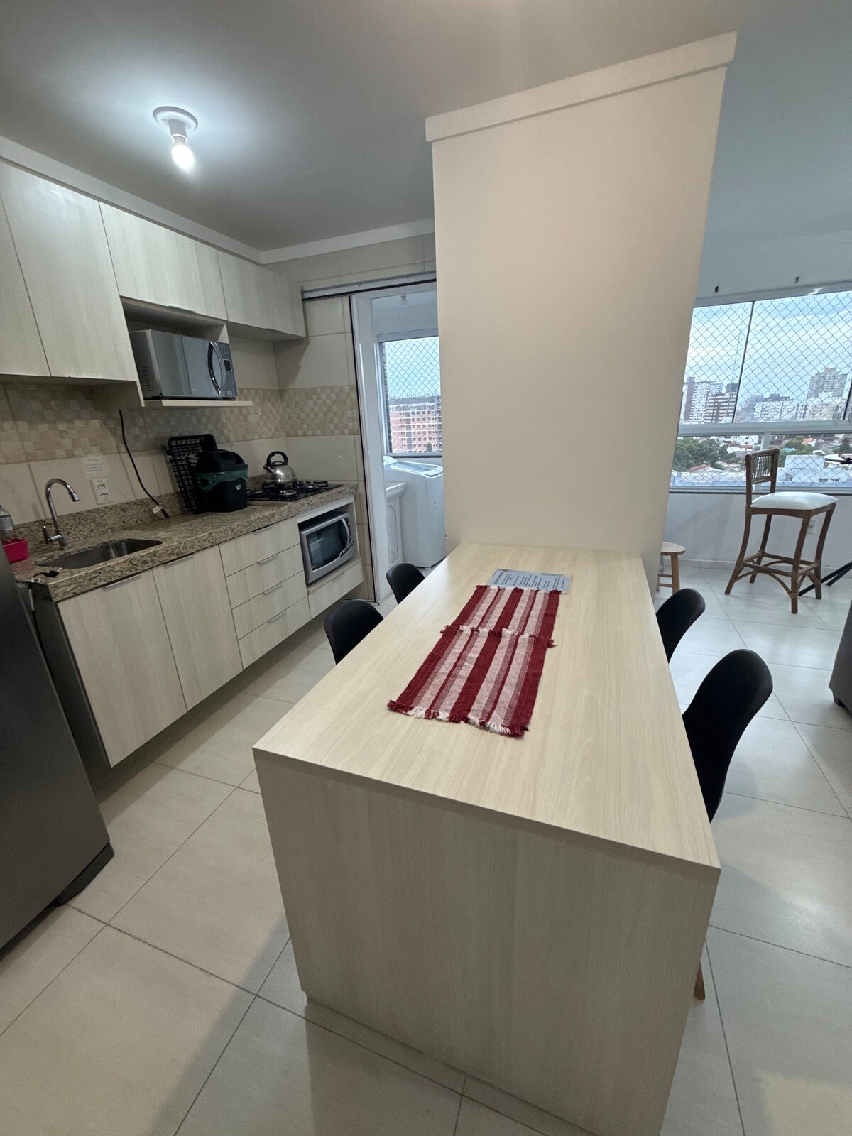 Apartament ben equipat en una ubicació excel·lent, gairebé a la cantonada de R. da Igreja i a 2 illes del mar i del nou passeig marítim, a 15 minuts a peu del centre de la ciutat, Super Bistek a prop, 1 dormitori, bany social, sala d'estar i menjador, cuina amb zona de servei, rentadora, barbacoa, ventiladors de sostre, aire condicionat al dormitori, televisor intel·ligent, TV Box amb tots els canals, 1 plaça d'aparcament, apartament al 3r pis amb ascensor, 110v, amb capacitat per a 5 persones.