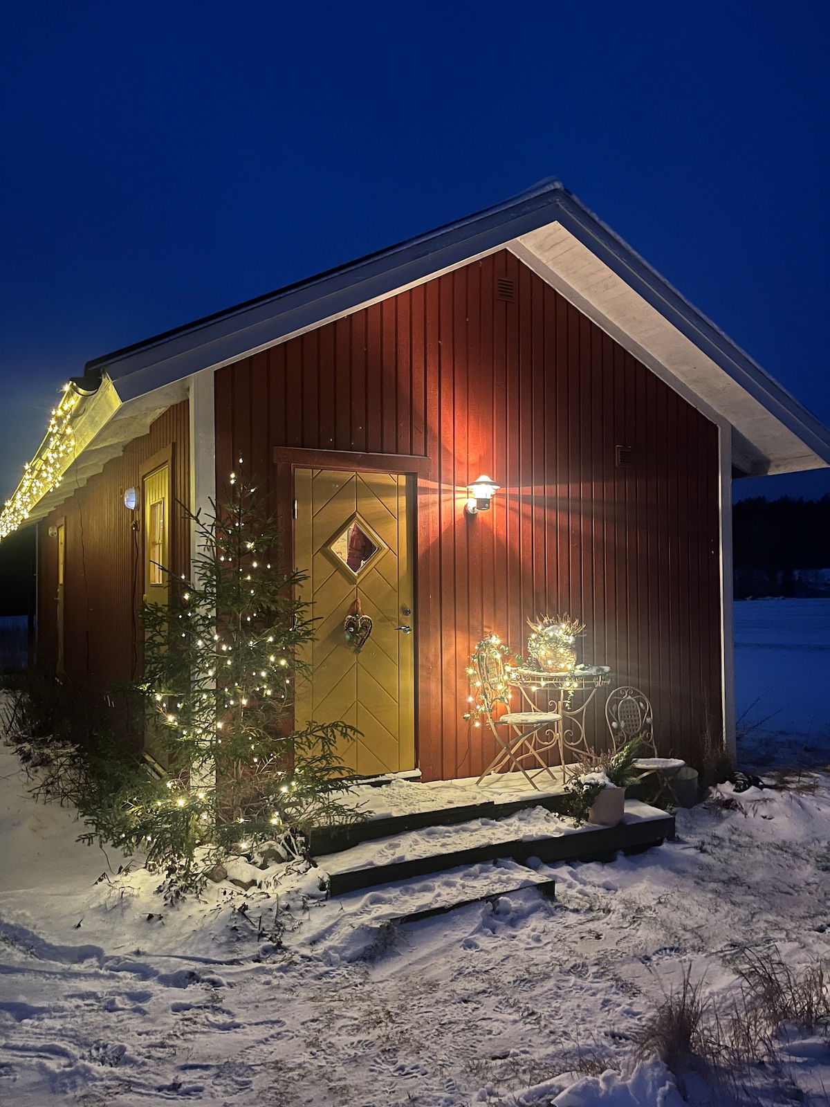 Casa rural amb cuina i bany a la primera planta i dormitori/sala de televisió a la planta superior, amb vistes al llac. És situat a la parcel·la on vivim, una família de dos adults, dos nens i un gos petit. Sensació interior amb a prop del bosc i el paisatge, rutes de senderisme i ciclisme, natació i pesca tant a Sämsjön com a Åsunden. Diversos quilòmetres de carrils bici pavimentats, fins i tot ideals per als esquís rodants que comencen fora de la porta. Per acord, es pot llogar un vaixell. Recollida de pomes en temporada.