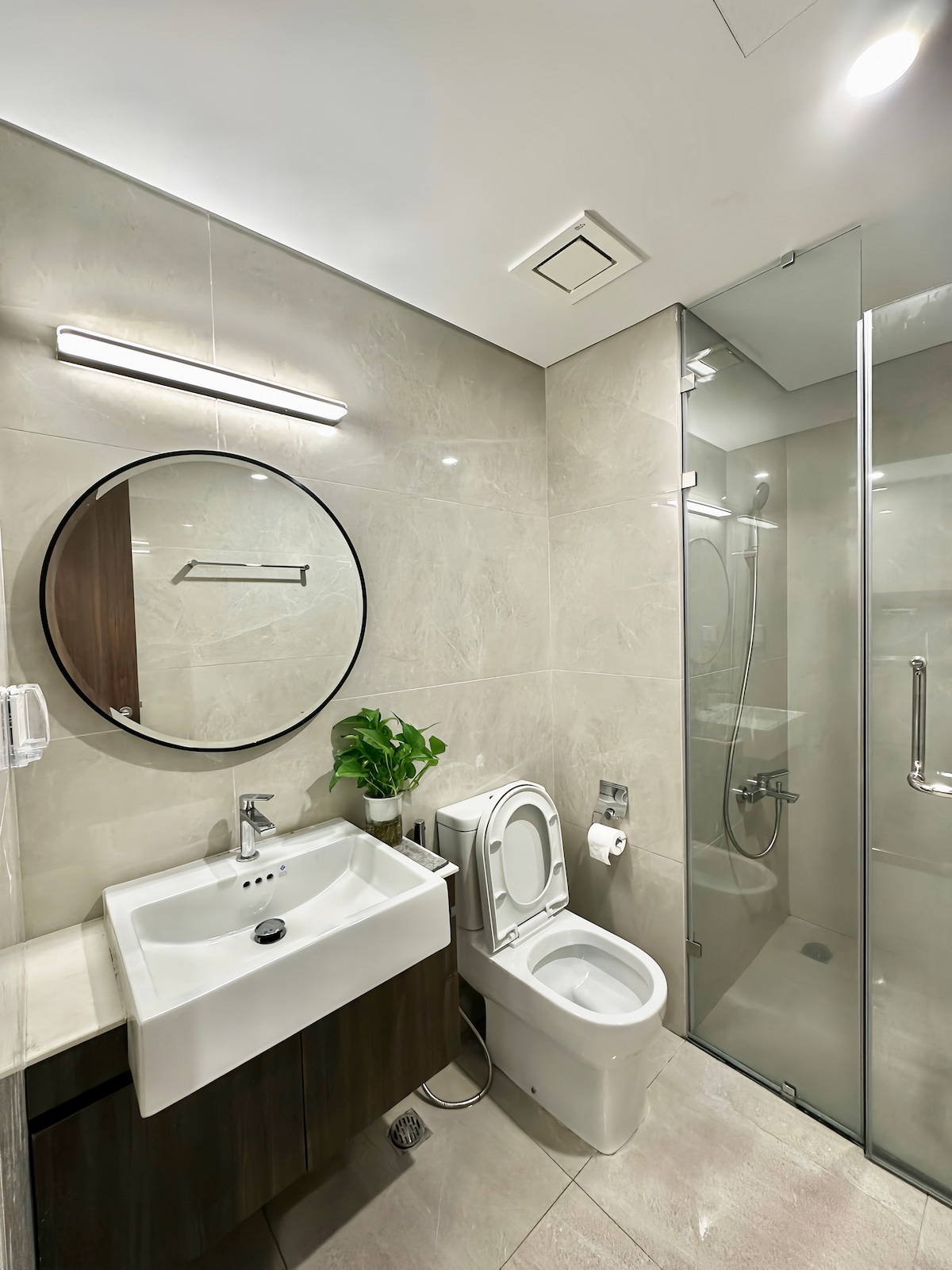 Experience 5-star inspired luxury in this stylish grey-toned studio, featuring a glass-walled bathroom, raw stone accents, and premium finishes. Perfectly located in the heart of Ecopark, just 3 minutes to Swan Lake and 30 minutes to Hanoi Old Quarter, with restaurants, cafés, and shops right at your doorstep. Equipped with Dyson fan, Bluetooth speaker and modern amenities; plus access to the gym and swimming pool on the 3rd floor — perfect for an elevated stay.