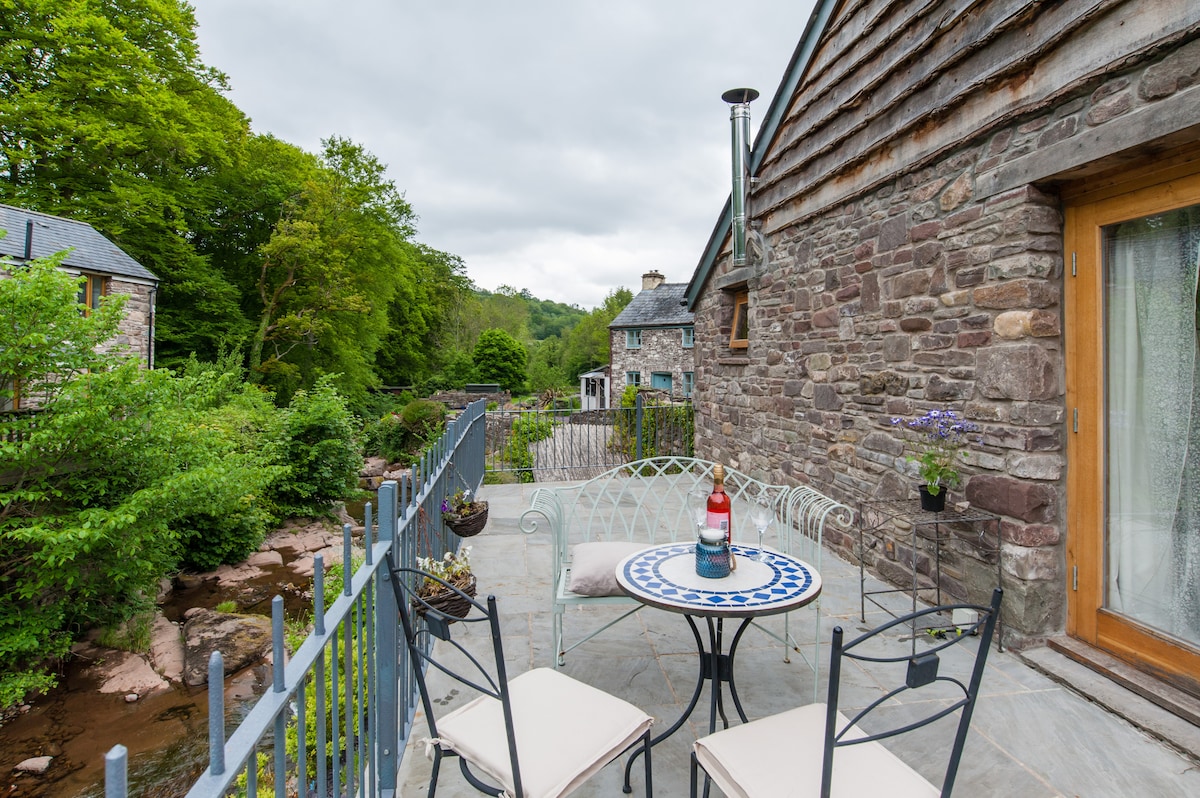 escapada romàntica artística única per a dos a Brecon Beacons, Nr Pen Y Fan , amb una impressionant vista a la vora del riu i espectacular a la cascada, des del balcó del pati, gaudeix de la serenitat d'estar immersos en la natura, relaxació total. Gaudeix de les nits sota les estrelles o del cremador de troncs amb una copa de vi. Estètica campestre elegant, decoració, amb influències modernes. Experimenta un oasi perfecte de calma en aquest espai privat de planta oberta. Bonica, fresca i neta que proporciona una barreja d'encant de modernitat i mobles clàssics.