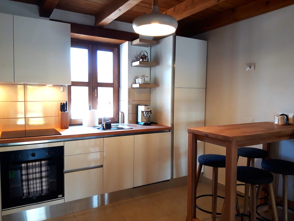 Ambient tranquil envoltat de natura lluny del mar a 5 km. Casa de pedra amb moble de roure de 3 plantes, amb amplis espais oberts. Hermosa vista del mar i els Alps. A les proximitats immediates, els propietaris tenen producció de formatge, de manera que es poden tastar diferents formatges autòctons. També als prats propers es pot veure ovelles pasturant. La distància a la ciutat garanteix la pau i la llibertat. Ideal per a famílies, ciclistes i qualsevol persona que gaudeixi de la natura. Els hostes reben un 30% de descompte en les entrades als parcs aquàtics.