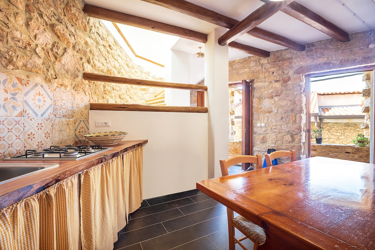 Casa meravellosa d'estil típic sard, decorada amb ànima i amor. La casa viu l'encant d'elements antics i naturals com la pedra i la fusta que constitueixen els elements dominants en l'estructura i en el mobiliari. Genial per a una parella o una família/grup de quatre persones. La casa està equipada amb tot el necessari per a un còmode descans. Suggereixo als meus hostes que lloguin un cotxe petit, per evitar dificultats per passar pels carrers. Tanmateix, el cotxe és important per moure 's.
