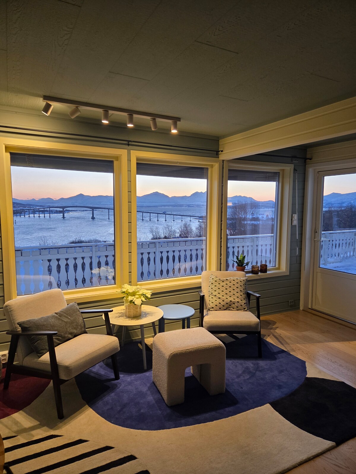 Elegant pis de planta superior al costat del mar al centre de Tromsø amb una vista impressionant de la catedral àrtica, el pont de Tromsø, el telefèric, el sol de mitjanit i la aurora boreal. Gaudeix d'Hurtigruta navegant des del sofà i escolta les onades a l'exterior. L'entrada forma part d'una terrassa acristalada amb vistes al sud. El centre està a 10 minuts caminant. L'apartament és obert, acollidor i un lloc agradable i còmode per passar el temps. Lloguer d'edat: mínim 25 anys. NO FUMAR DE CAP TIPUS.