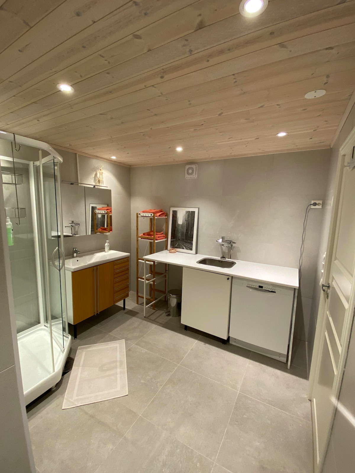 El pis forma part d'una casa adossada, i disposa d'habitacions amb capacitat per a 12 persones. Perfecta per a vacances familiars i grups més grans. Molt espaiós amb porxo propi i una preciosa vista sobre Tromsø. La terminal d'autobusos està a 1 km, i un petit autobús de trasllat serveix la zona durant les hores d'espiatge. Hi ha aparcament gratuït amb capacitat per a diversos cotxes. Recomanem llogar un cotxe. La casa està a prop d'una pista il·luminada per als amants del senderisme. Té una sauna que els hostes poden utilitzar.