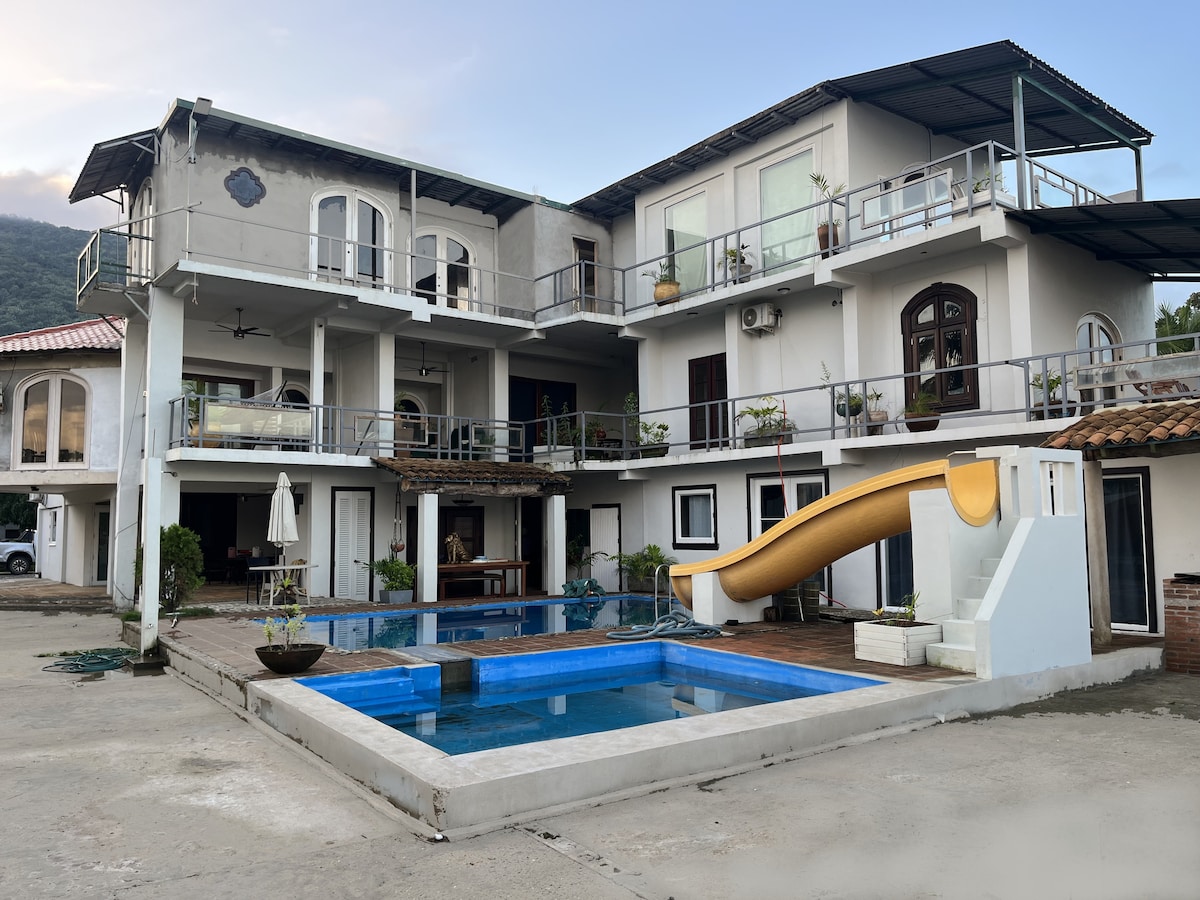 Spanish colonial architecture with central courtyard and large covered terrace overlooking the sea. It’s above the town on the edge of cliff to Cristales River. It’s close to the beach and center of the historic town. You’ll love it because of the ocean views, the people, the ambiance, and the gardens, the orchard, swimming in the rapids of the river that runs by the property, and other outdoors space. My place is good for couples, solo adventurers, business travelers, and families (with kids).