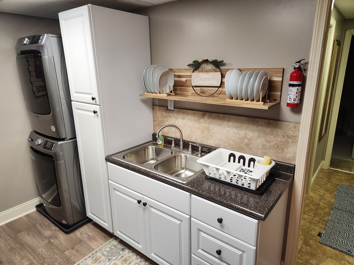 Acollidor apartament soterrani A només 3 quilòmetres de la I-59. Aquest espaiós i còmode pis soterrani és perfecte per a famílies, amics o viatgers sols que busquen una estada tranquil·la. Gaudeix de la comoditat d'una cuina totalment equipada, perfecta per preparar àpats durant l'estada i d'un bany complet amb elements bàsics. Amb la seva entrada privada i la seva acollidora distribució, aquest pis ofereix pau i privacitat. Tant si t'allotges una estona com si simplement estàs de pas, relaxa't aquí.