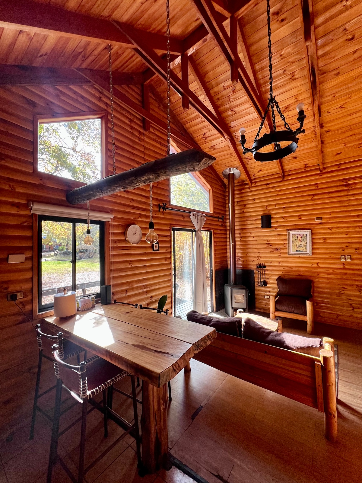 Relaxa't en aquesta escapada única i tranquil·la, on es pot gaudir d'un lloc envoltat de natura a menys de 10 minuts de Los Angeles. Pots gaudir d'un entorn envoltat d'arbres autòctons, una cabana a la vora del riu Rarinco amb terrassa, banyera, estufa, cuina equipada per als amants de la bona taula. A l'allotjament pots practicar pesca esportiva, fogueres, fer senderisme, gaudir d'una bona barbacoa a la terrassa o gaudir d'un bany calent a la nostra banyera.