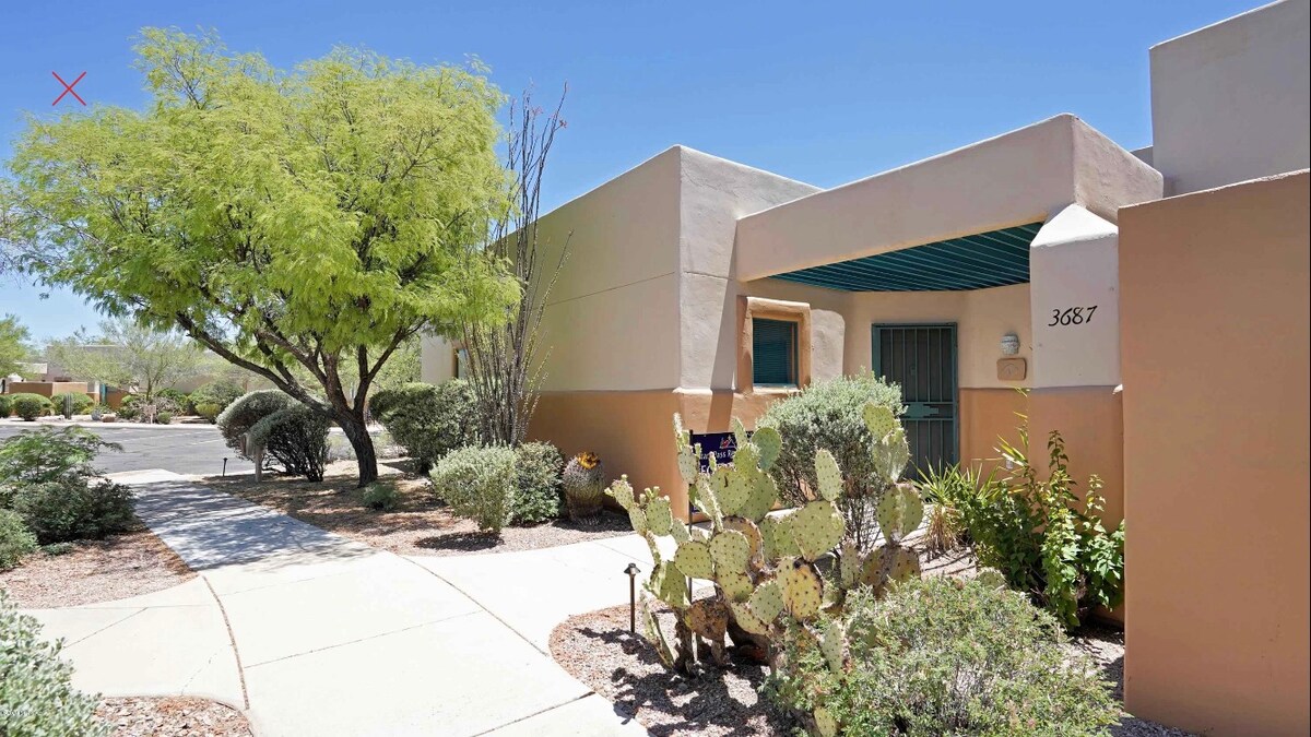 Aquesta casita per a hostes bellament remodelada està situada al centre de Tucson. A poca distància a peu del centre comercial Tucson, el circuit, molts restaurants i parcs. La comunitat tancada té una piscina comunitària/spa i gossos. El pati interior té moltes plantes i belles roques de quars grans. Mentre entres a l'estudi d'entrada privada, veuràs el terra de taula de rajoles, un llit queen, un televisor corbat de 55 polzades, un aparador i un petit escriptori. Aquesta habitació també té una cuina petita amb taulell de quars i un bany privat de luxe.