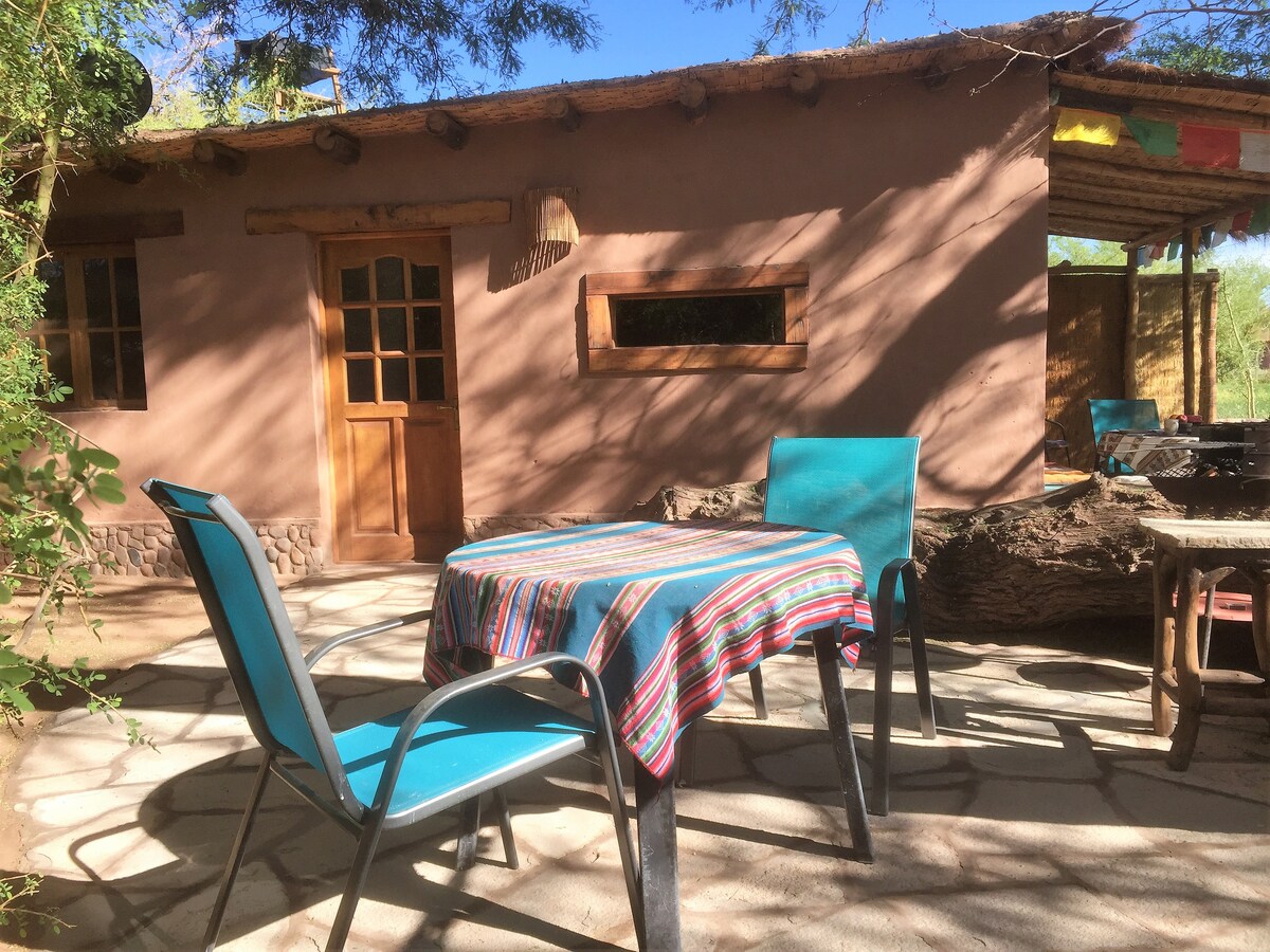 Cabina privada allunyada del centre turístic, a 3,5 km d'estil autòcton de San Pedro de Atacama (Adobe), on la vista descansa en el verd i la tranquil·litat de l'oasi. Cottage privat a 3,5 km del centre turístic. En l'estil arquitectònic local de la cultura de San Pedro ( a Adobe), en el camp i la tranquil·litat de l'oasi. Cabina privada allunyada del centre turístic, a 3,5 km d'estil natiu de San Pedro de Atacama (Adobe), on la vista descansa en el verd i la tranquil·litat de l'oasi. 100% energia solar.