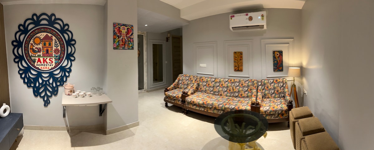 Et donem la benvinguda a AKS Homestay, un apartament espaiós i còmode de 3 habitacions al cor d'Agra. Perfecte per a famílies i grups, aquest allotjament modern disposa d'una cuina totalment equipada, aire condicionat a totes les habitacions i dos banys complets per a la teva comoditat. Situat a prop del Taj Mahal i d'altres llocs d'interès, ofereix una estada tranquil·la amb totes les comoditats de la llar. Relaxa't, desconnecta i gaudeix d'Agra amb estil!