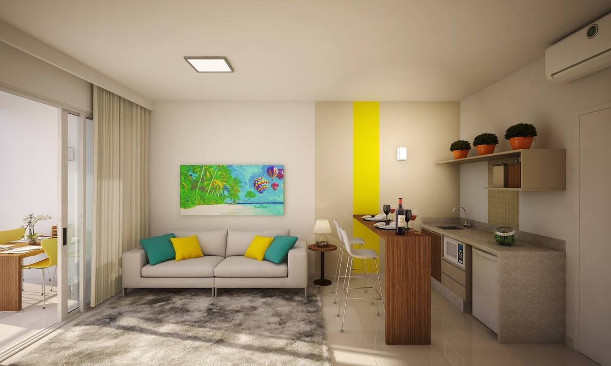 Nou pis d'un dormitori a Enjoy Olímpia Park Resort, al costat del parc Thermas dos Laranjais a Olímpia - SP. L'apartament té una gran sala d'estar, amb sofà llit, cuina americana, bany, dormitori amb 1 llit individual i un auxiliar, un altre llit doble, bany amb dutxa de gas, assecadora, tovalloles, wifi, aire condicionat, aparcament cobert i fàcil accés al parc.