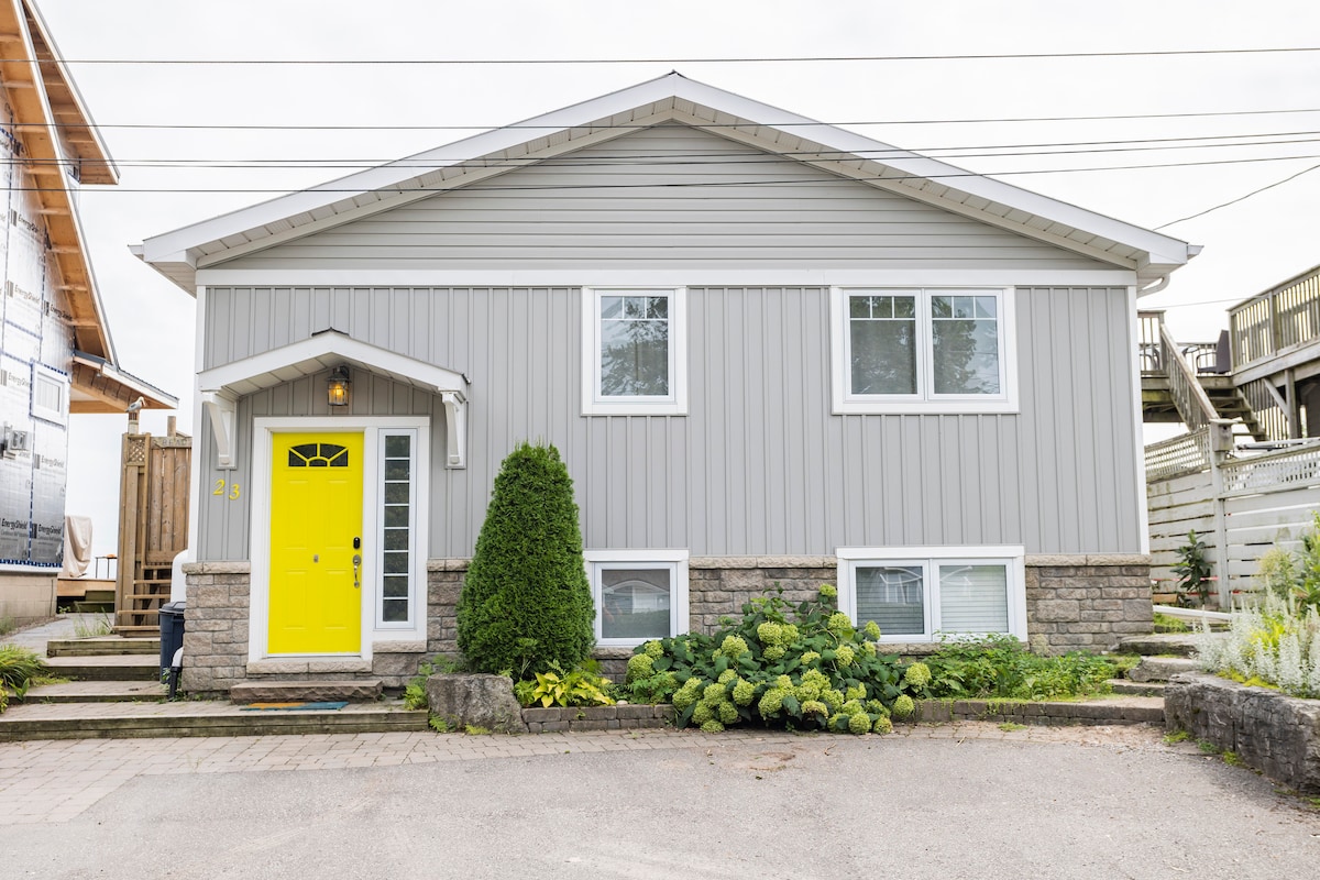 Take it easy at this unique and tranquil 4 season, 2 bedroom, getaway. Close to the great lake and all amenities. Close enough to walk to the beach and easy access to eateries. Just around the corner is a baseball diamond and playground area. Large private treed backyard, room to play, area to hang a hammock, 2 decks, barbecue, and dining area. Roast marshmallows on your own campfire, amongst the park like setting. Quiet, peaceful private outdoor getaway. Ideal for couples and small families.