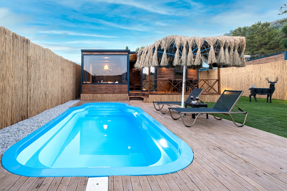 Vil·la bungalou a la piscina privada i al bosc de la sauna d'Urla