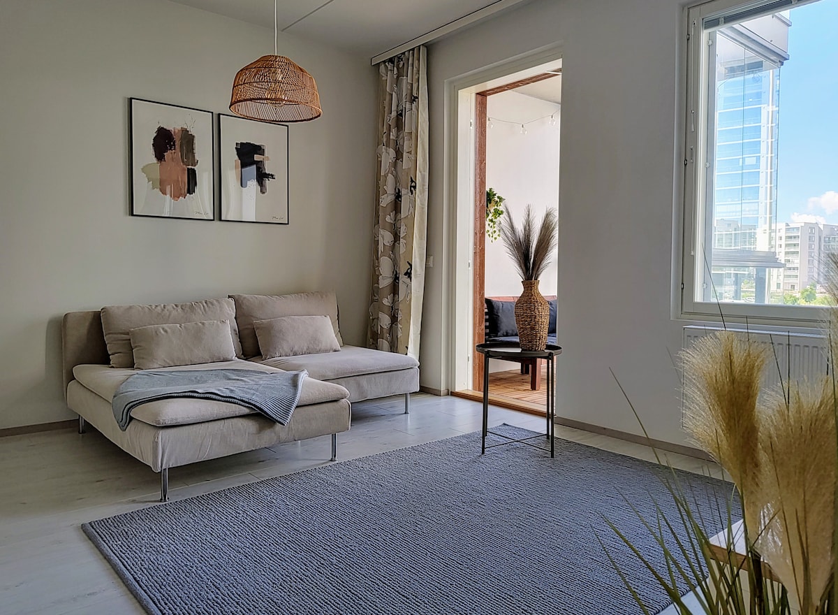 Et donem la benvinguda al nostre allotjament d'estil escandinau, ben dissenyat, amb sauna privada. Situat a la part superior d'un enorme centre comercial Tripla, el nostre ampli apartament 1 BR (59,5 m2) és la base perfecta per a la seva estada a Hèlsinki. Ubicació - Accés fàcil des de tot arreu (tren, autobús, tramvia). - El tren tarda 5 minuts al centre de la ciutat i 22 minuts a l'aeroport. - Aparcament amb càrrec disponible, demana més informació - Supermercat gran les 24 hores a la planta baixa