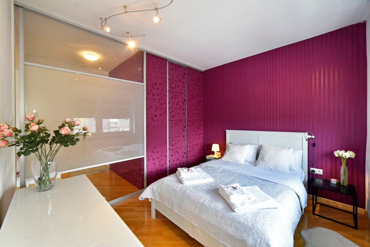 BRAND new elegant apartment in the CITY CENTER less then 10 min walking distance from the main square and train station. Situated in a peaceful backyard on the main street so you can enjoy quiet nights. There is one bedroom with queen size bed, living room with TV + NETFLIX and pull out sofa (queen size), bathroom with toilette and spacious walk in shower separated. All furniture and appliances are brand new. FREE tea&coffee,FREE towels.