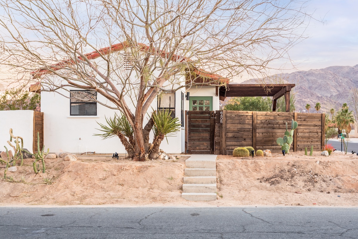Les meves cases rurals es van construir el 1940 i es troben enfront del Centre de visites original de Joshua Tree (que té una petita llibreria preciosa). Aquest tram de carretera està designat com una carretera pintoresca i porta directament a l'entrada del parc (3 milles al sud). Cada casa rural té un pati davanter privat on veuràs clarament les increïbles postes de sol i la serralada alta. Els enormes arbres de la meva propietat la separen de l'autopista i sovint es poden veure els corredors i coyotes viatjant pel desert.