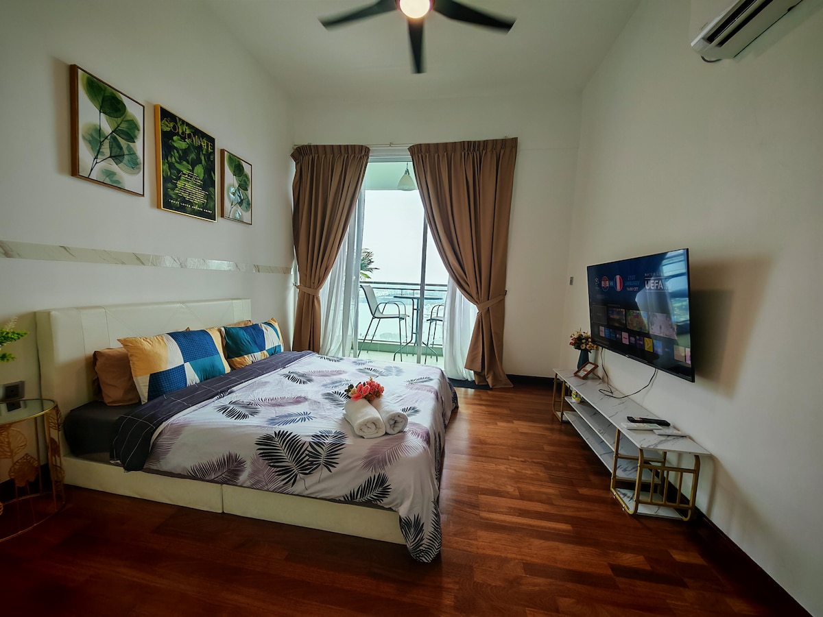 Relaxa't i relaxa't en aquest espai tranquil i elegant. Tranquil·la't en aquesta escapada única i tranquil·la. Aquest estudi està just al costat de JB/Singapore CIQ. Hi ha molts serveis a l'edifici, com ara una piscina infinita, una sala de vapor, una sauna, etc. Dins de l'estudi, tindràs una banyera de hidromassatge privada i vistes al mar! A què estàs esperant? Vine i gaudeix d'una estada de somni aquí!