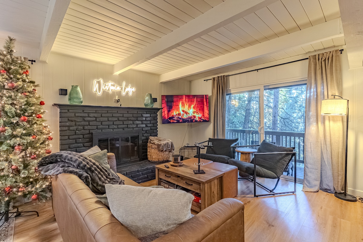 Relaxa't en aquesta cabana elegant a les muntanyes de San Bernardino: a minuts del centre de Crestline, el llac Gregory i el llac Arrowhead. A només 74 milles del centre de Los Angeles. finestra amb aire condicionat instal·lades de maig a setembre per a les necessitats de refrigeració d'estiu. Cadascun dels dos dormitoris disposa d'un llit King i una roba de llit acollidora. La cuina actualitzada totalment equipada inclou un rentaplats, un aixeta d'aigua filtrada i Nespresso. Televisor Samsung Frame amb Hulu, Netflix. Llar de foc de gas i molts jocs i discos per gaudir de la teva estada.