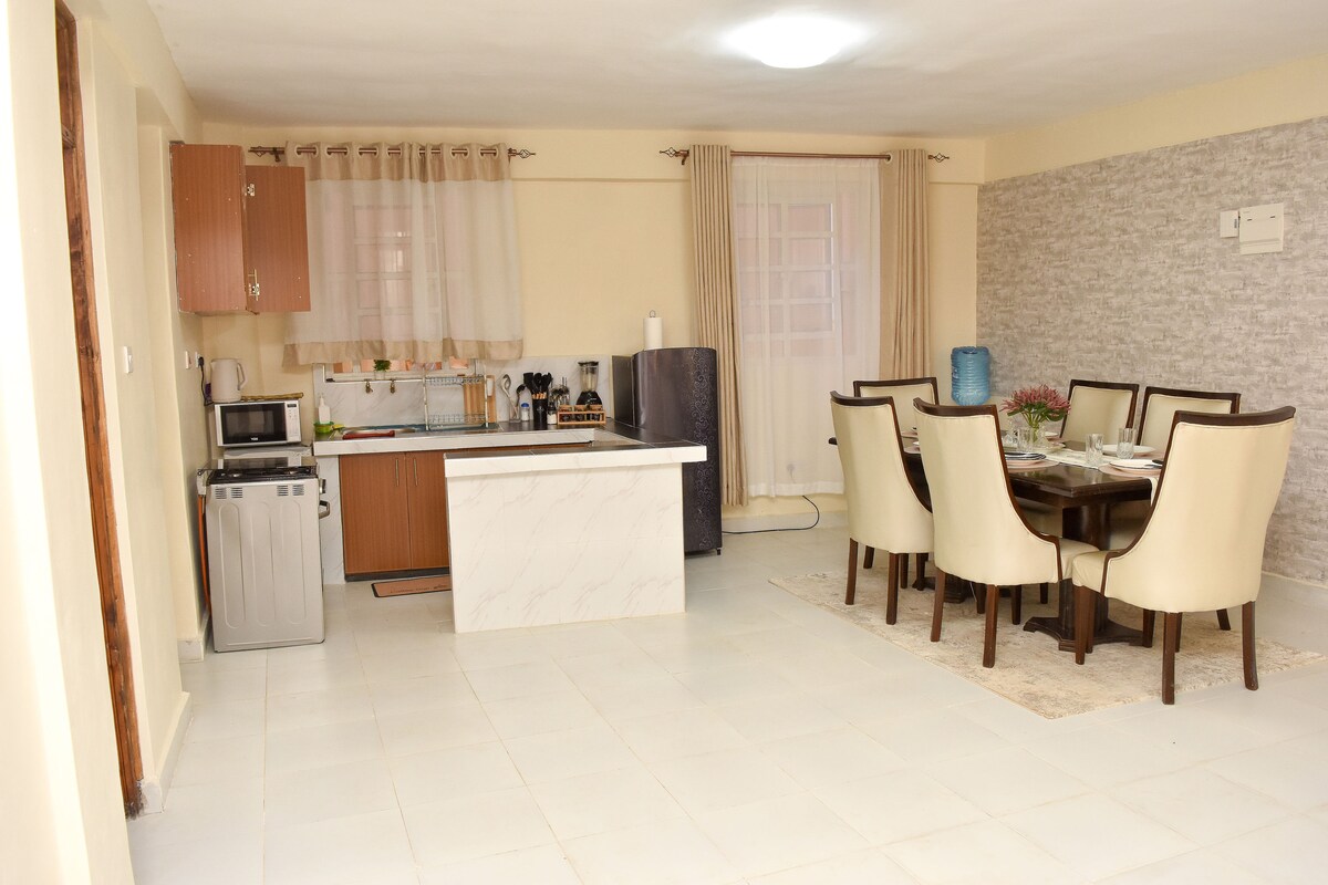 Gaudeix de la teva estada en aquest apartament cèntric i elegant al cor d'Elgon-View a Eldoret, perfecte per a famílies i viatges en grup. A 5 minuts del centre de negocis d'Eldoret i del centre comercial Rupa per anar de compres i gaudir de diversos serveis socials. * Wi-Fi, televisor intel·ligent de 55 polzades, Wi-Fi amb Netflix i YouTube. * Arribada les 24 hores després de les 14:00 (possiblement arribada a les 12:00) * A 5 minuts del CBD i del centre comercial RUPA *Cafè, te i sucre disponibles * Cuina totalment equipada * Aparcament gratuït dins del recinte