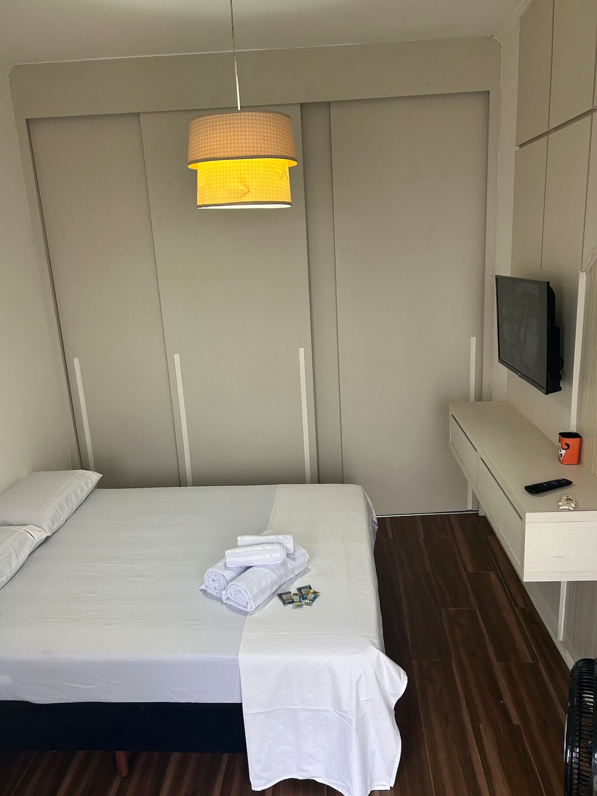 Màxim 2 hostes AQUESTA SUITE NO TÉ ESPAI PER A COTXES, NOMÉS MOTOCICLETA ! Entrada i sortida flexibles, consulta. NO SERVIM esmorzar , posem a disposició una sandvitxera per suite i una cafetera 3 cors a la zona exterior. Tenim càpsules, 3,00 R$ cadascuna Les suites Estrela Guia (onades,mar,cala i oceà) es troben a la platja d'Enseada, a Ubatuba, a només 100 metres del mar. Les suites disposen de minibar, aire condicionat i televisor intel·ligent. Proporcionem llençols de llit i bany.