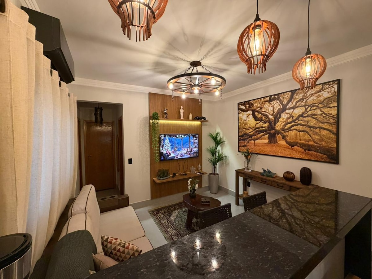 Apê nou, modern i còmode, 1 garatge cobert, amb aire condicionat i ben situat al barri d'Olinda, a la millor regió d'Uberaba! Es troba a 700 metres de la UNIUBE i de l'aeroport. Cercat de forns, restaurants i supermercats. Ubicació de fàcil accés! Apê té wifi, 2 dormitoris amb aire condicionat i 2 banys. Microones i rentadora, cafetera i torradora, etc. Ideal per a aquells que busquen comoditat i confort. ✅ Roba de llit i llençols inclosos 🔑 Retirada de la clau en qualsevol moment