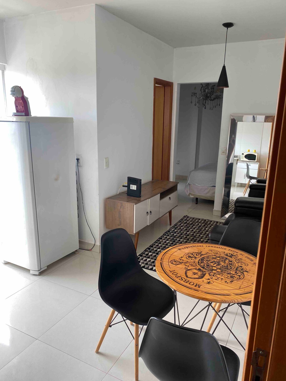 Aquest estudi, còmode i ben situat, al costat del Center Shopping Uberlândia, té tot el que necessites. Té capacitat per a 3 persones com a màxim i és ideal per a estades de negocis o d'oci. Ubicació privilegiada a 400 metres de l'Ajuntament, a 700 metres de la UFU Santa Mônica i a 800 metres de la UFU Educação Física, amb accés fàcil a gimnasos, bars i a les avingudes principals de la ciutat. Entorn organitzat i funcional. Important: no disposa de plaça de garatge.