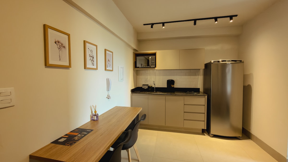 Situat en un estudi premium que combina disseny, comoditat i funcionalitat. L'espai disposa d'una cuina totalment equipada, un llit còmode, una televisió intel·ligent, aire condicionat, wifi i un balcó amb vistes a la ciutat. Gaudeix d'una piscina al terrat amb vistes panoràmiques, un gimnàs complet, un espai de cotreball i una sala de reunions. El complex residencial també ofereix una bugaderia amb rentadora i assecadora, una zona gastronòmica i aparcament (no inclòs en la tarifa de la reserva). Ideal per a la feina o l'oci, amb un alt nivell i una experiència excel·lent des de l'arribada.